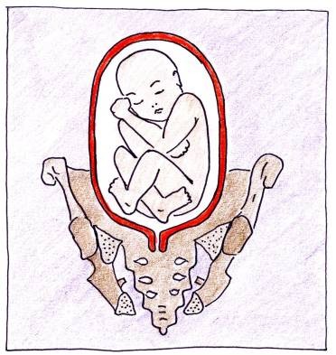 - Životní styl – způsob života je nyní více sedavý (televize, práce, auto, mobil), chybí dostatek fyzické aktivity. U těhotných převládá sed s překlopenou pánví dozadu, nebo sed s překříženýma nohama, což vede ke zmenšení prostoru vpředu pánve. Miminko se pak „ukládá“ do zadního postavení.